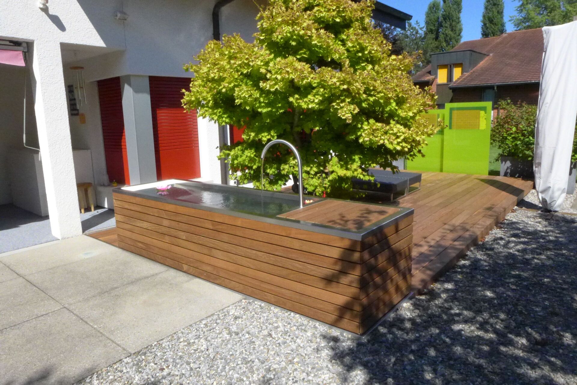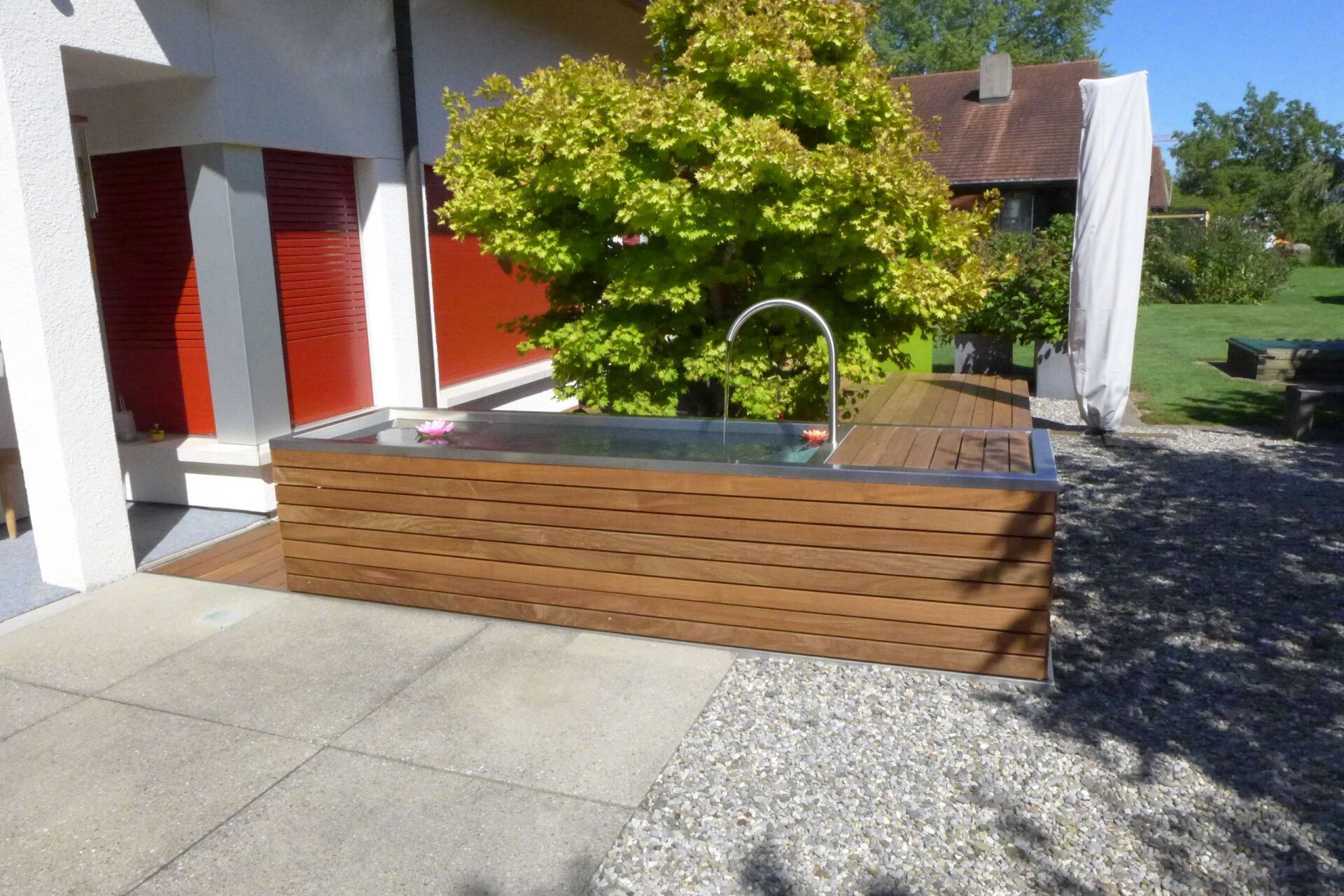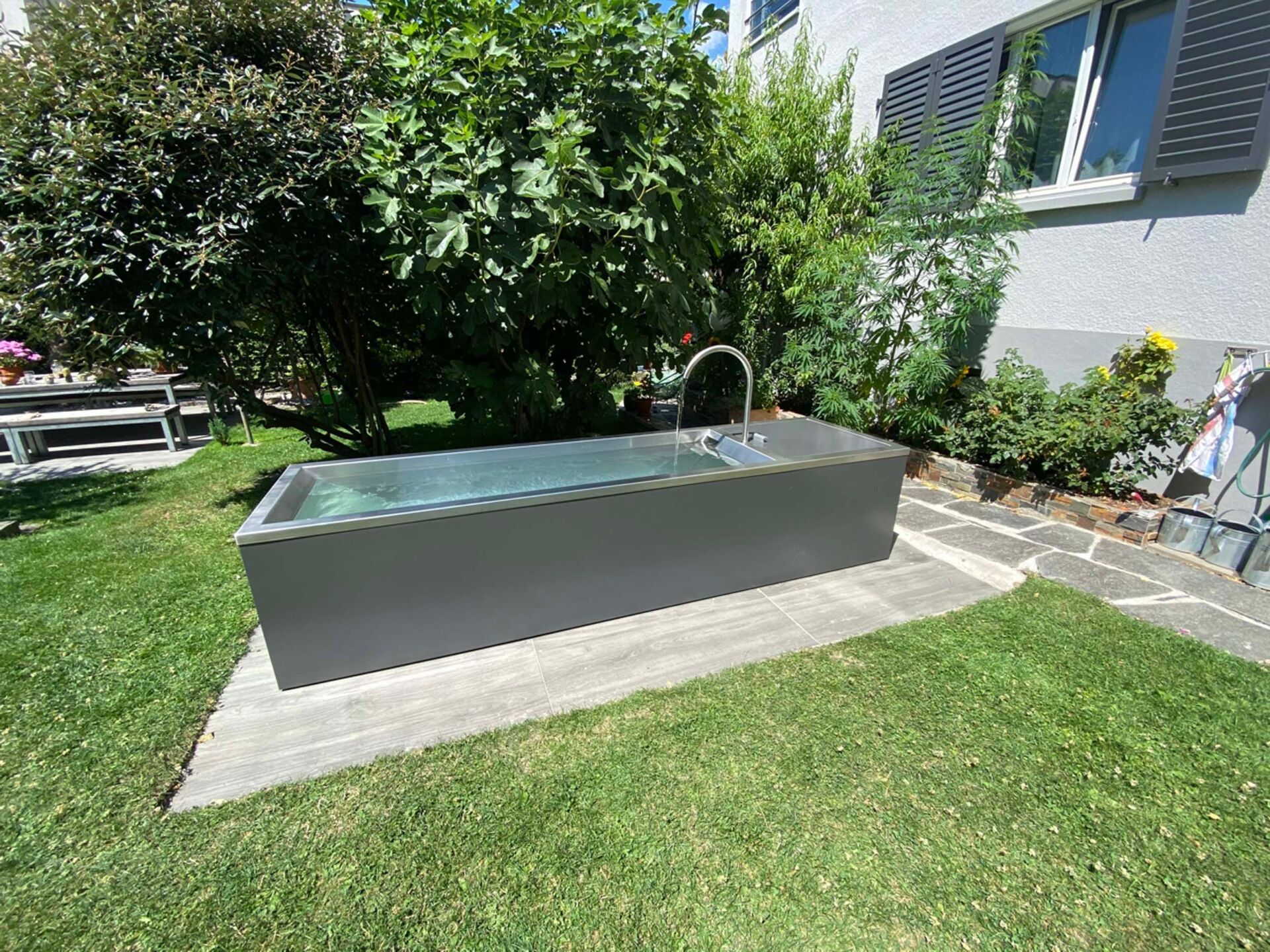Wie der Name Nanopool erraten lässt, ist unser Badebrunnen in der Grösse ein Zwergenpool. Die technische Ausstattung gleicht jedoch einem normalen Schwimmbad.